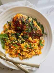 While I am a huge fan of the latin inspired flavors of my arroz con pollo, sometimes you don’t have a lot of time to cook and this herb butter chicken and rice comes together quick with simple ingredients. It reheats easily too, so it makes great leftovers.