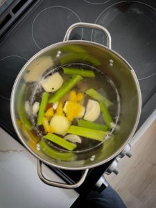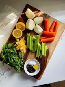 Today, I am making matzo ball soup and with only the matzo balls, carrots and some herbs, the stock that is used in this soup needs to be really good stock. It is one of the main stars of the show, so it is definitely worth putting some extra effort into to ensure that your matzo balls are simmering in something spectacular.