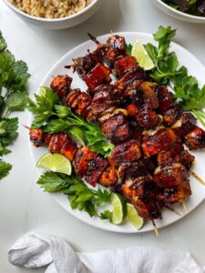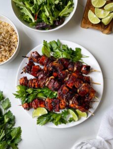 These skewers are so full of flavor and once you take a bite of one of those super crispy edges, you’ll be officially on team charred.