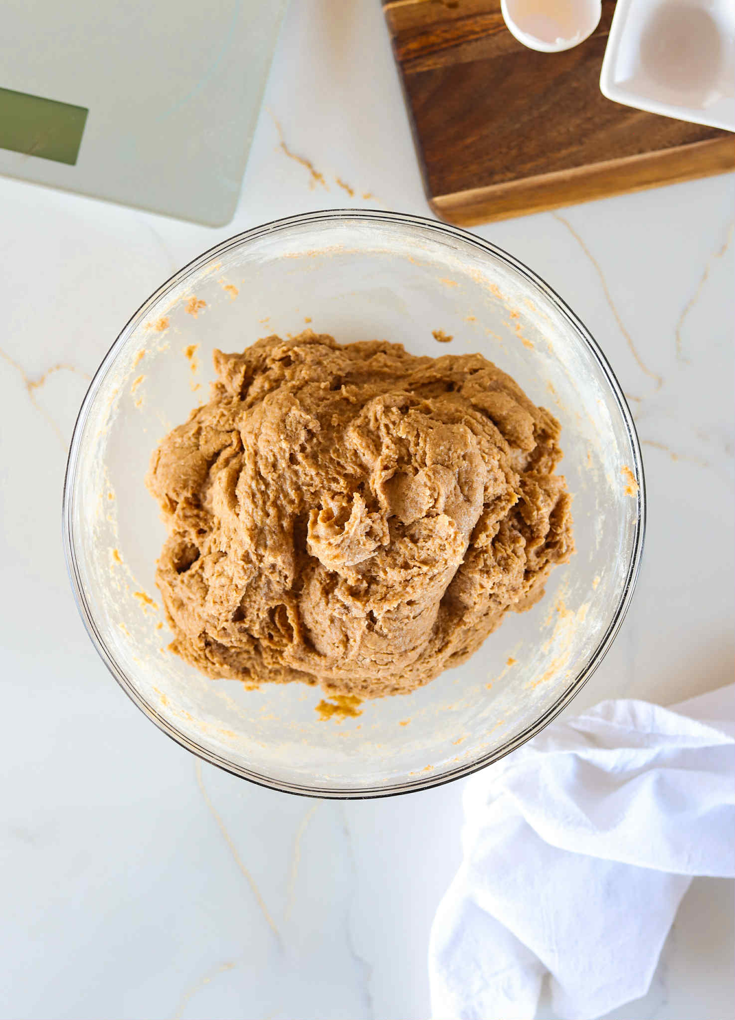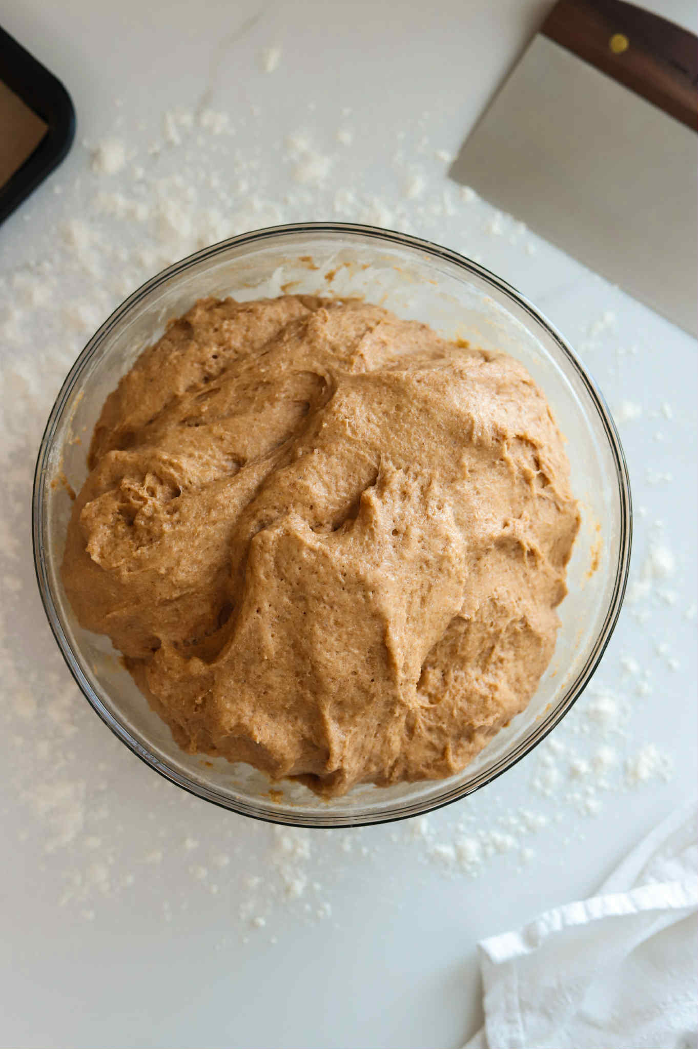 Now add 500 grams of whole wheat flour and 6 grams of salt and mix until you no longer see any dry ingredients left behind. Knead the dough just a bit in the bowl to bring everything together a bit. You’ll see in the photo above that this dough is not going to feel like your typical smooth, springy bread dough… especially at this point, but as soon as everything seems to be fully combined, cover the bowl and let it rest in a warm spot for 30 minutes.