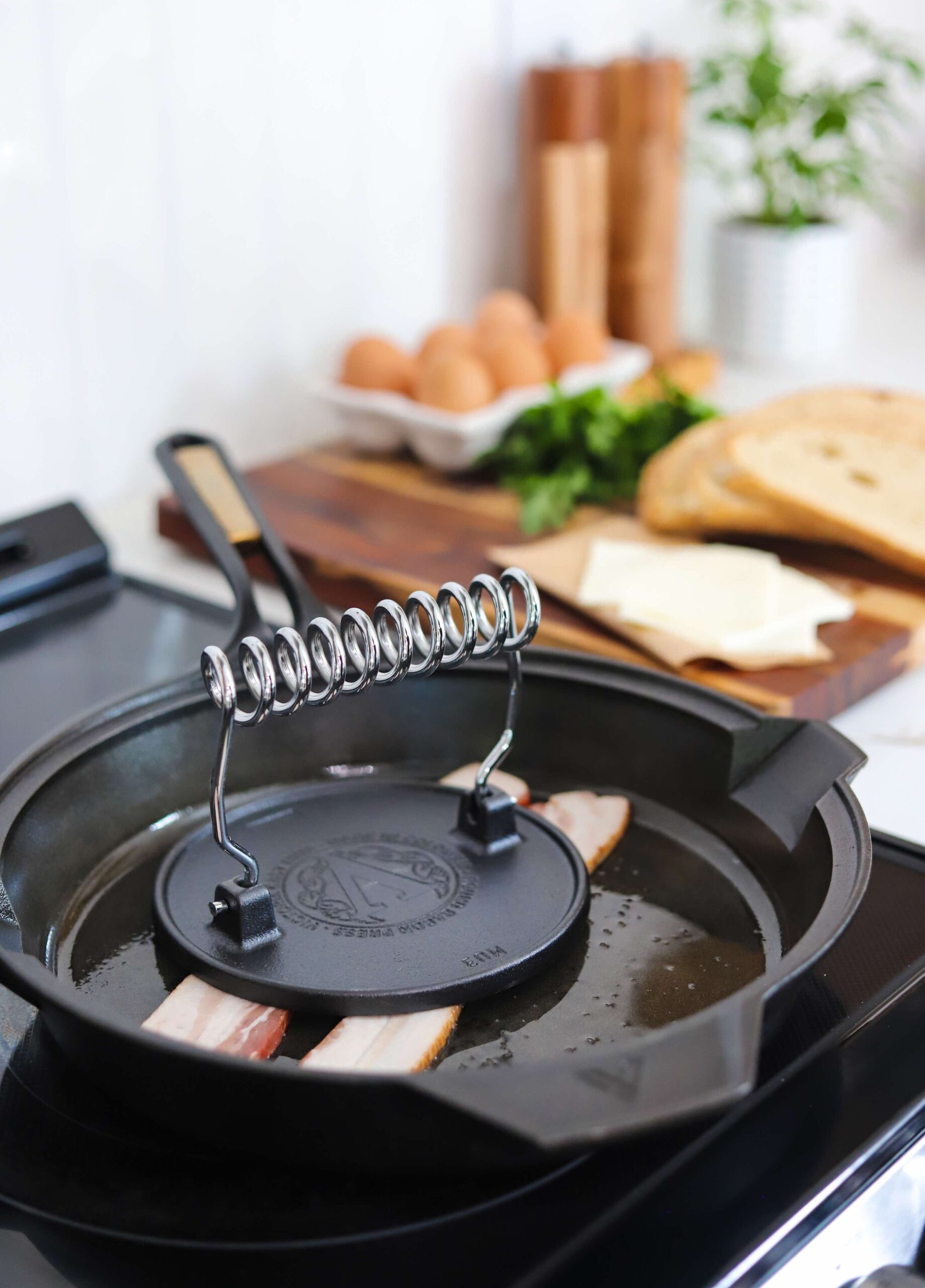 - For crispy bacon, pancetta or ham – my favorite way of doing this is by placing the pieces in a single layer over a parchment lined baking sheet and baking them in a 400 degree oven until they are crispy. Transfer them onto a paper towel lined plate to make sure the excess grease is removed before adding them onto the breakfast sandwiches