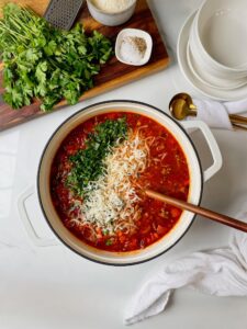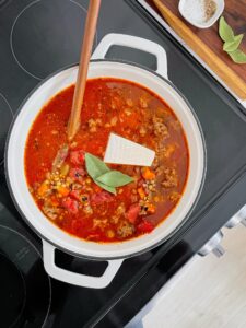 I also like to add a bay leaf, parmesan rind and some crushed red pepper for even more layers of flavor, but use what you have on hand!