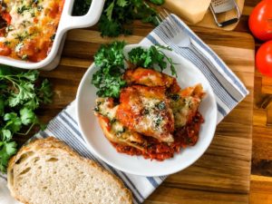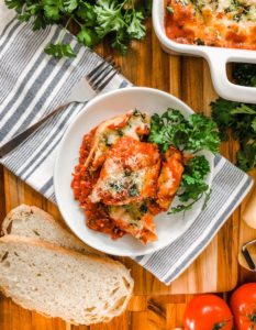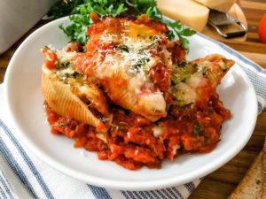 This meal just makes me happy. It is warm and cozy and one of those dishes that I have a real hard time not going back for seconds. I highly suggest having a few slices of soft italian bread close by to scoop up any left over marinara and filling that may have escaped from the shells.