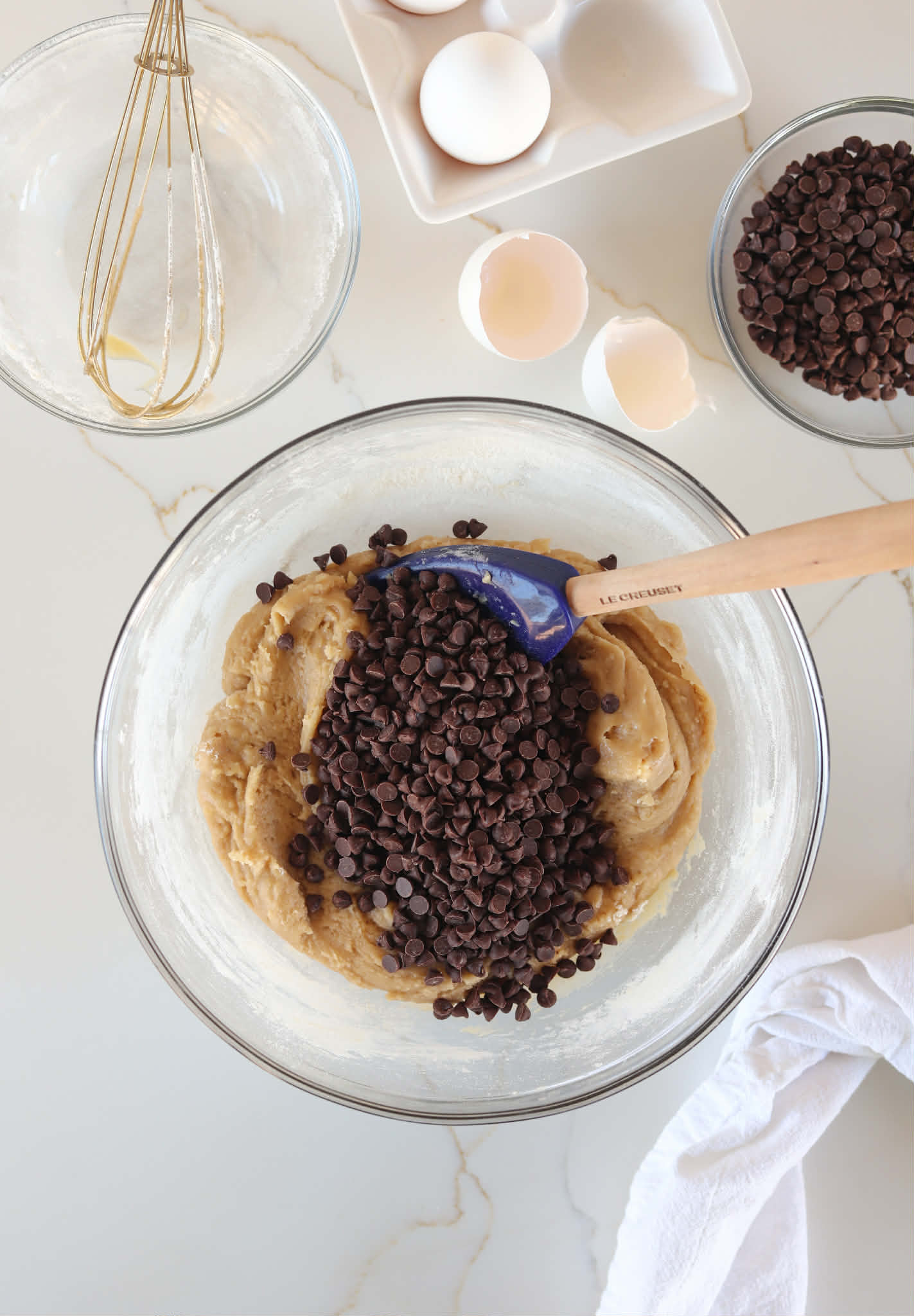 - Fold in 3/4 cup of chocolate chips and mix to incorporate