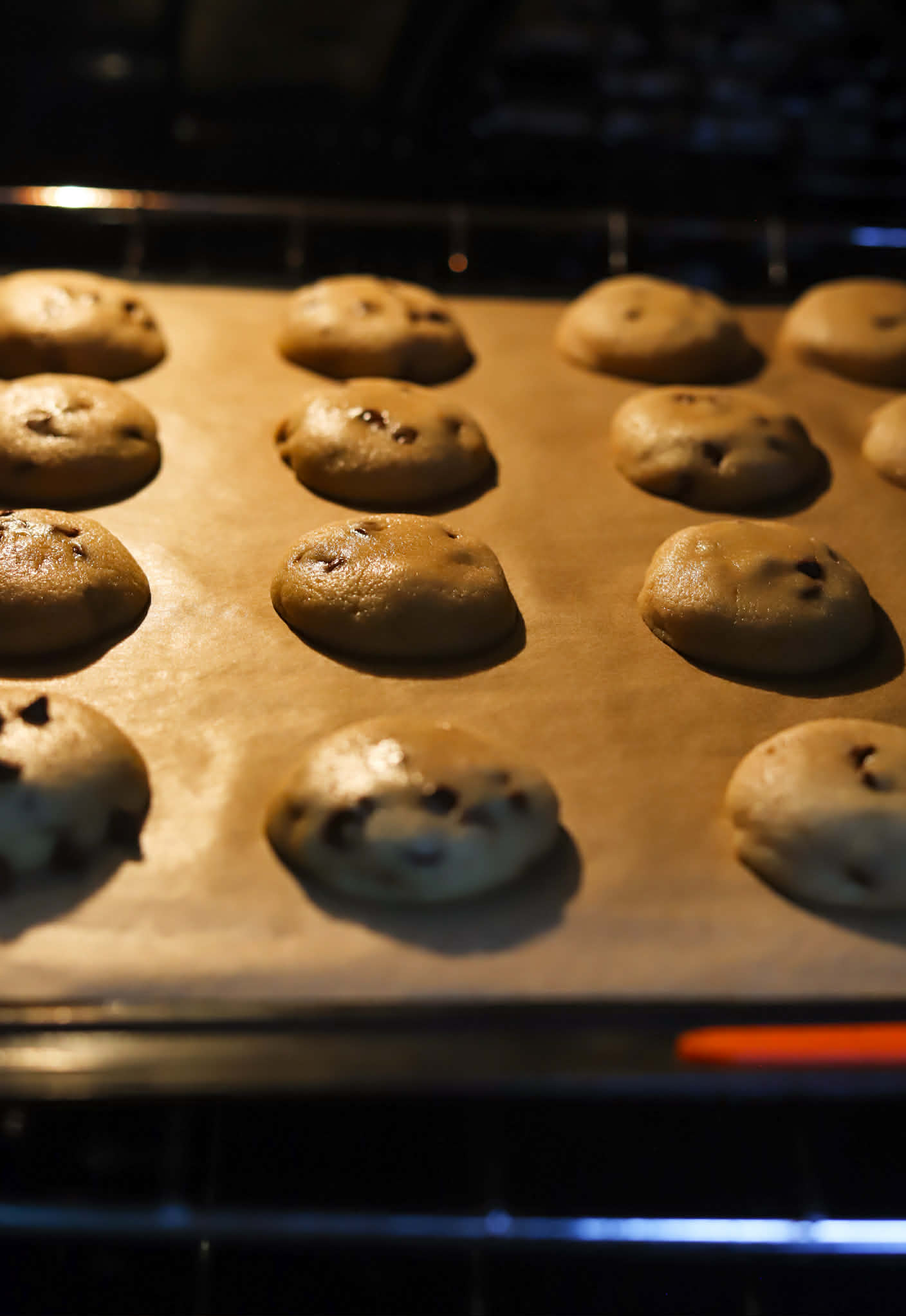 - Once the dough is quite firm and your oven is preheated, transfer the chilled dough onto your parchment lined baking sheets leaving about an inch between them