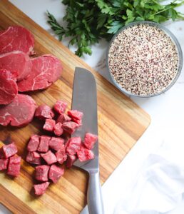 When it comes to deciding on which cut of beef you use, you have some options. Ribeye and new york strips will give you the most tender results, but they are often expensive and do have a higher fat content. Tenderloin is a leaner option that will still give you great results and top sirloin is the best budget friendly option for tender results.