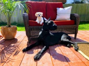 I would love to introduce you to my boys, Twinkie and Kuro. Twinkie is an eight year old Malti-poo and Kuro is a two year old Giant Schnauzer. My husband’s job moves us a lot, so although we both love dogs, we went nine years of marriage and moving around the world before we got a dog.