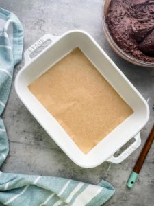 - Prepare a baking dish by buttering the interior or spraying with non-stock spray and lining the bottom with parchment paper