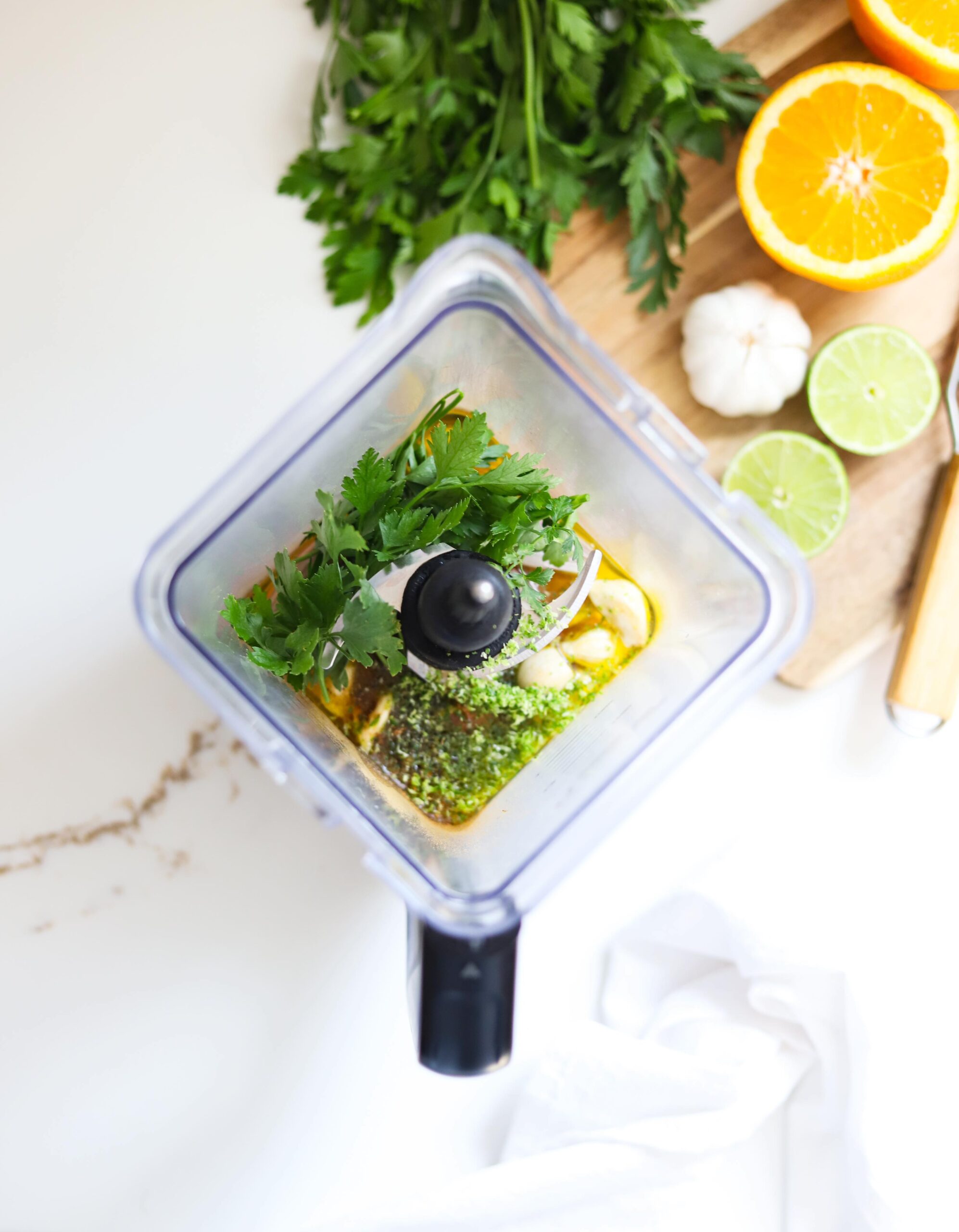 Combine the ingredients in a blender and blend until the shallot and garlic are fine and everything is completely combined. Things should be smelling quite wonderful by now….