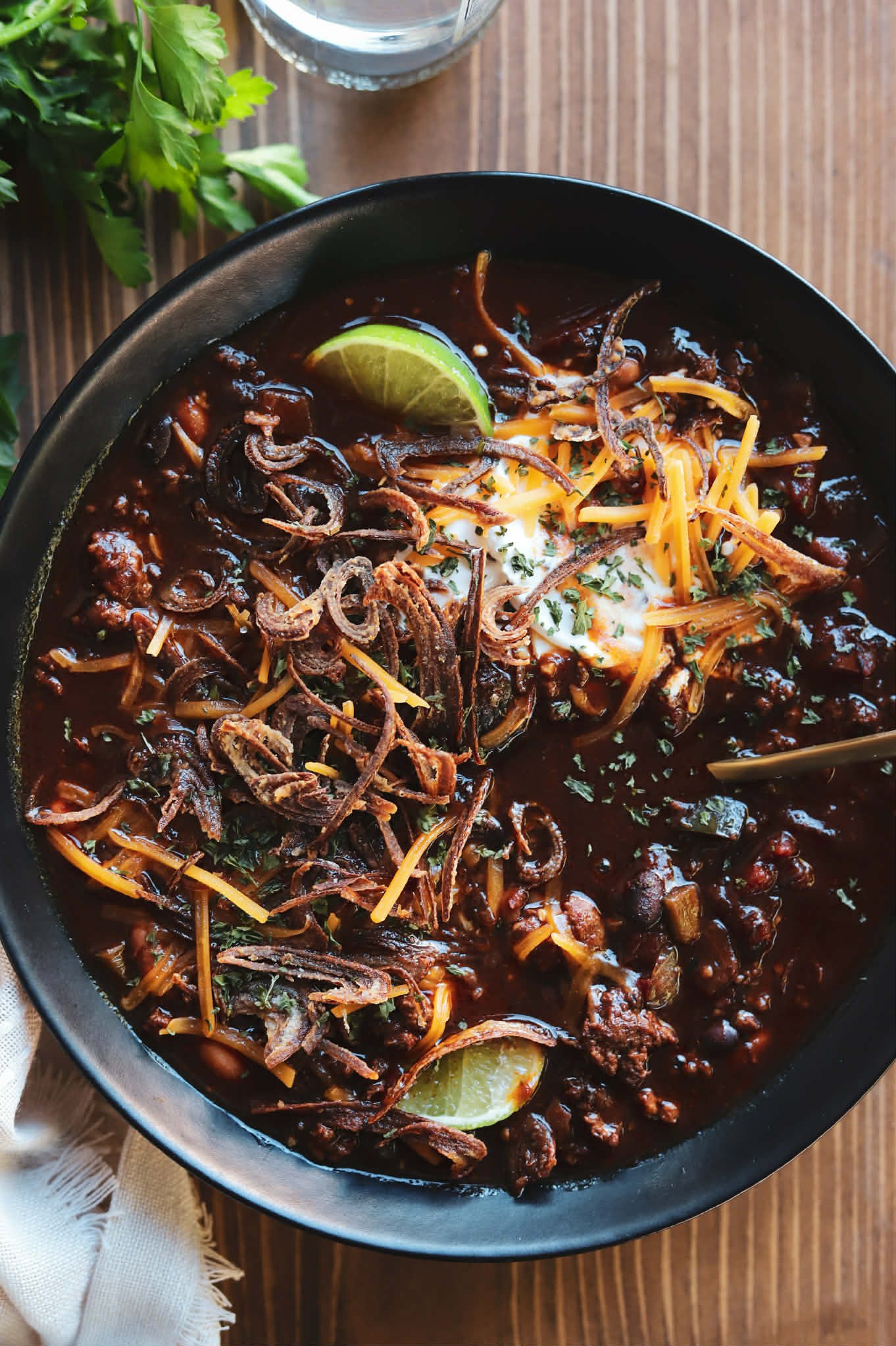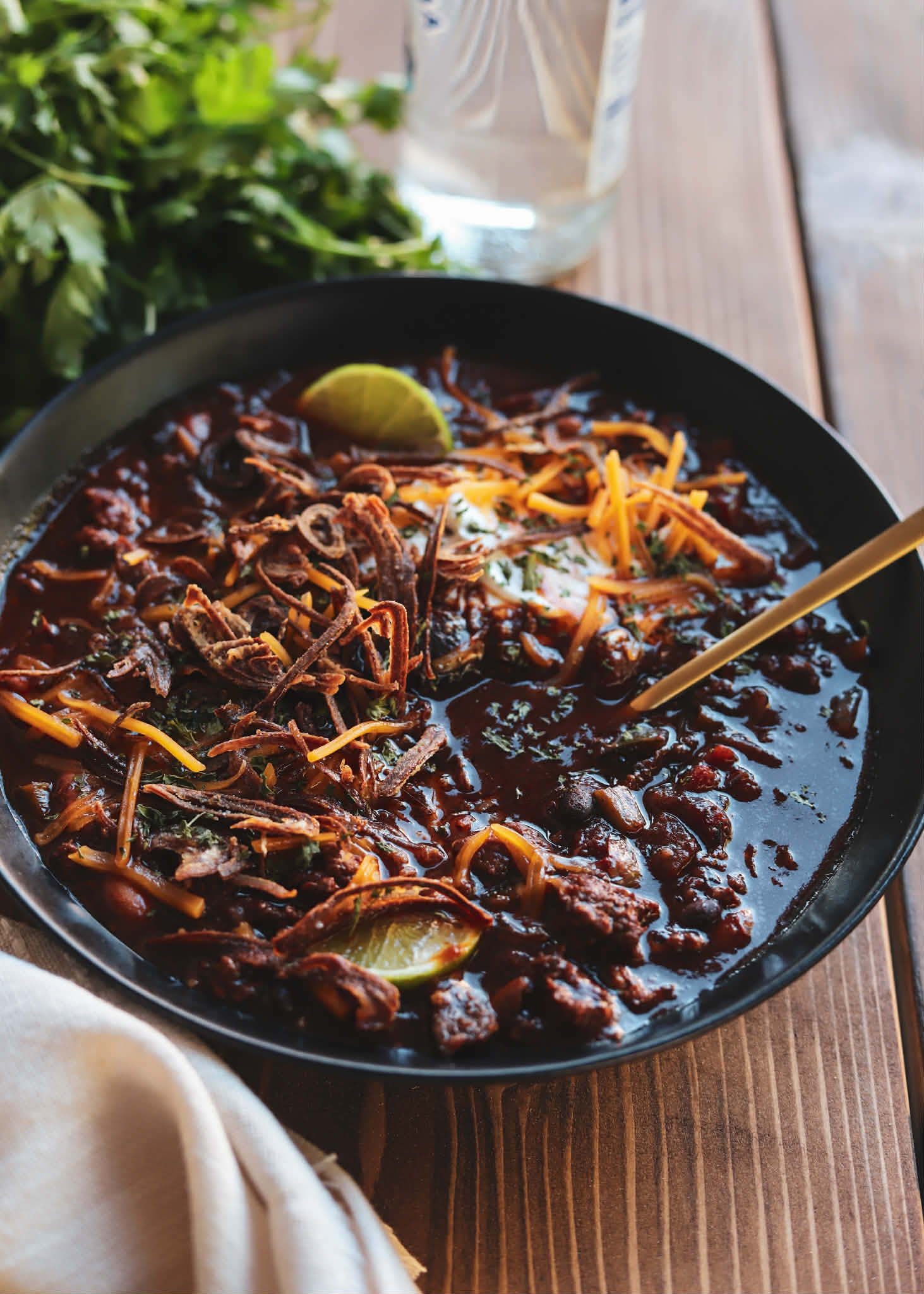 This chili is everything a great chili should be. It has so many complex layers of flavor and the sweetness, heat and meaty goodness is all beautifully balanced. This is a truly fabulous chili.