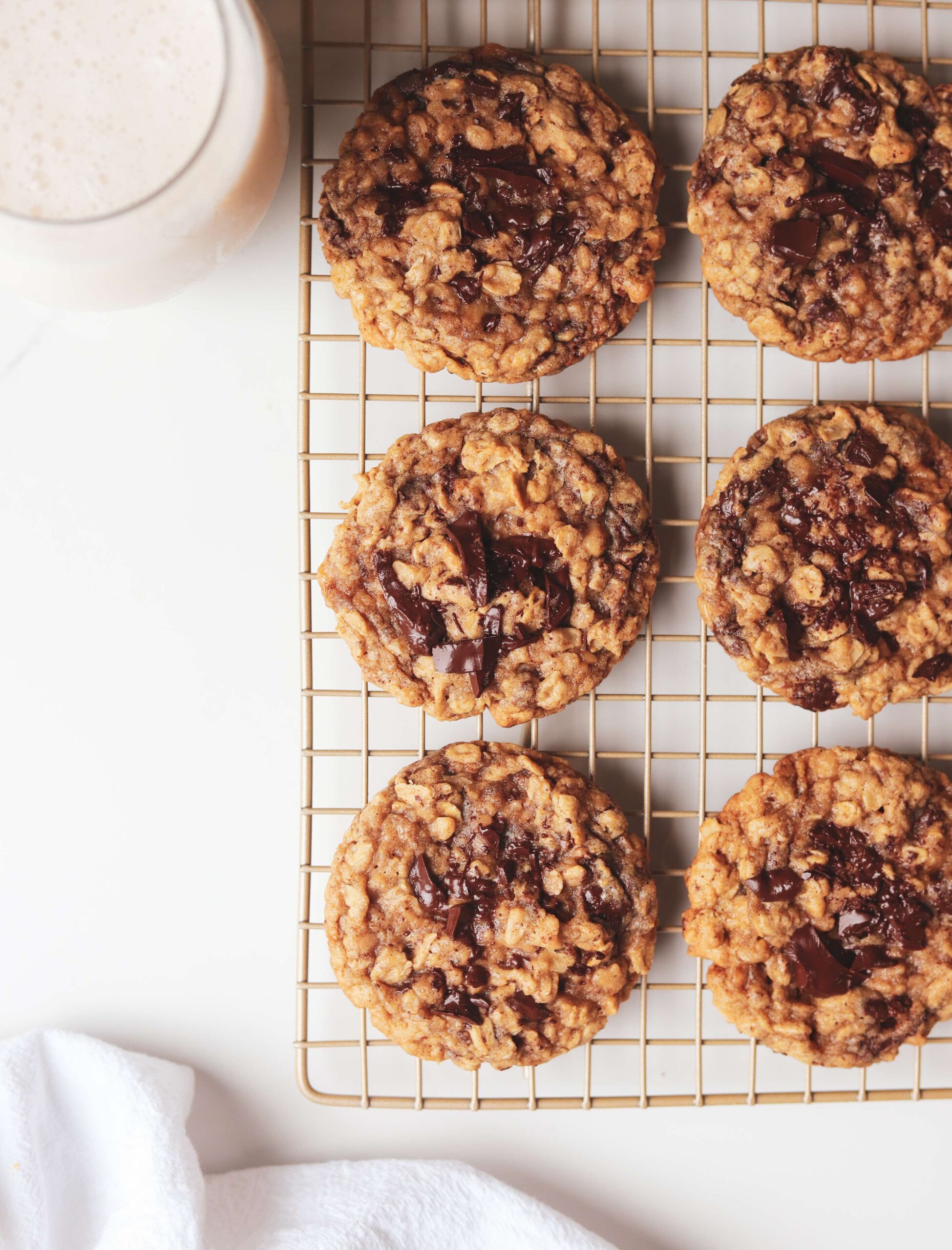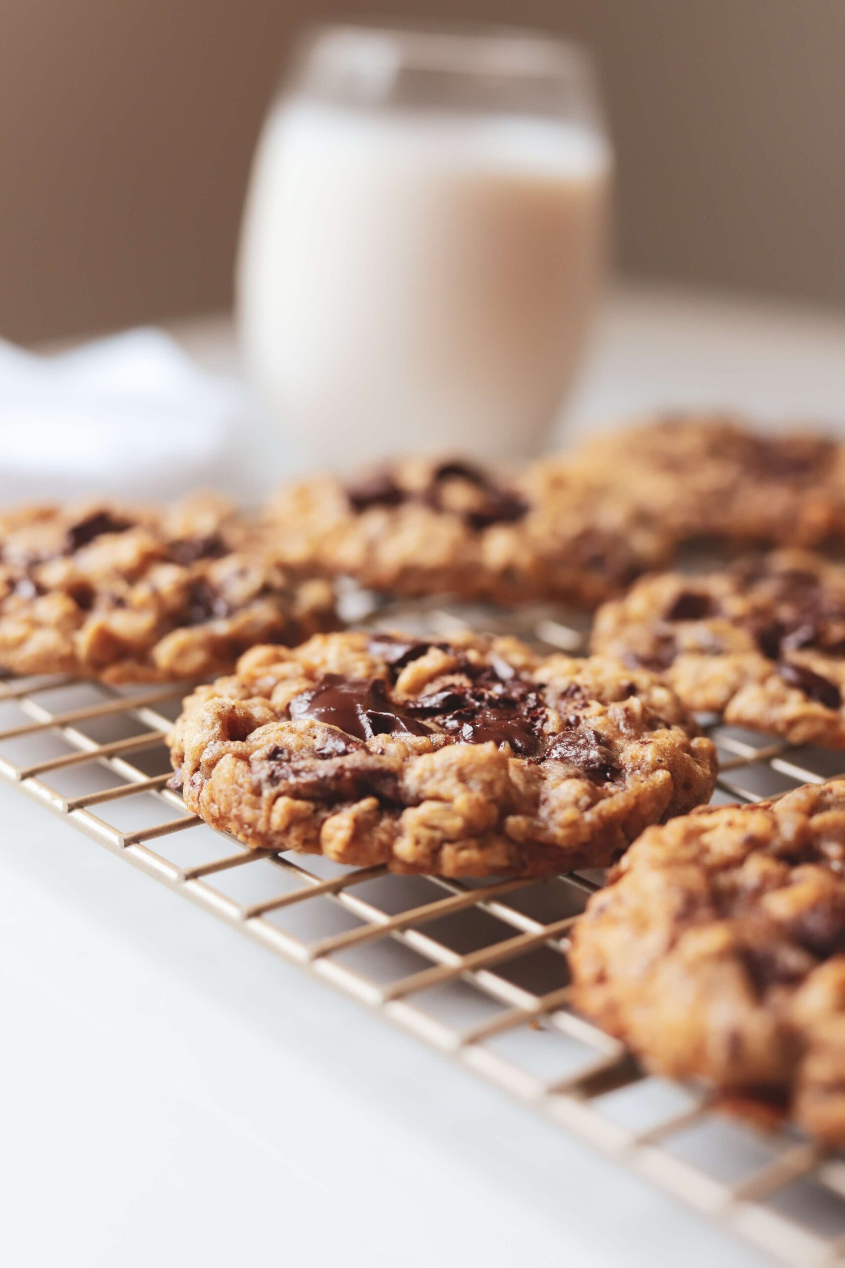 I feel that now would be a good time to tell you that if you are not a fan of your standard oatmeal cookies, you need to try these ones. They are nothing like your typical dry, raisin filled oatmeal cookie. They are soft, chewy and full of chocolate chips, sort of like a fabulous hybrid between a chewy oatmeal cookie and a soft chocolate chip cookie… they are absolutely fabulous.