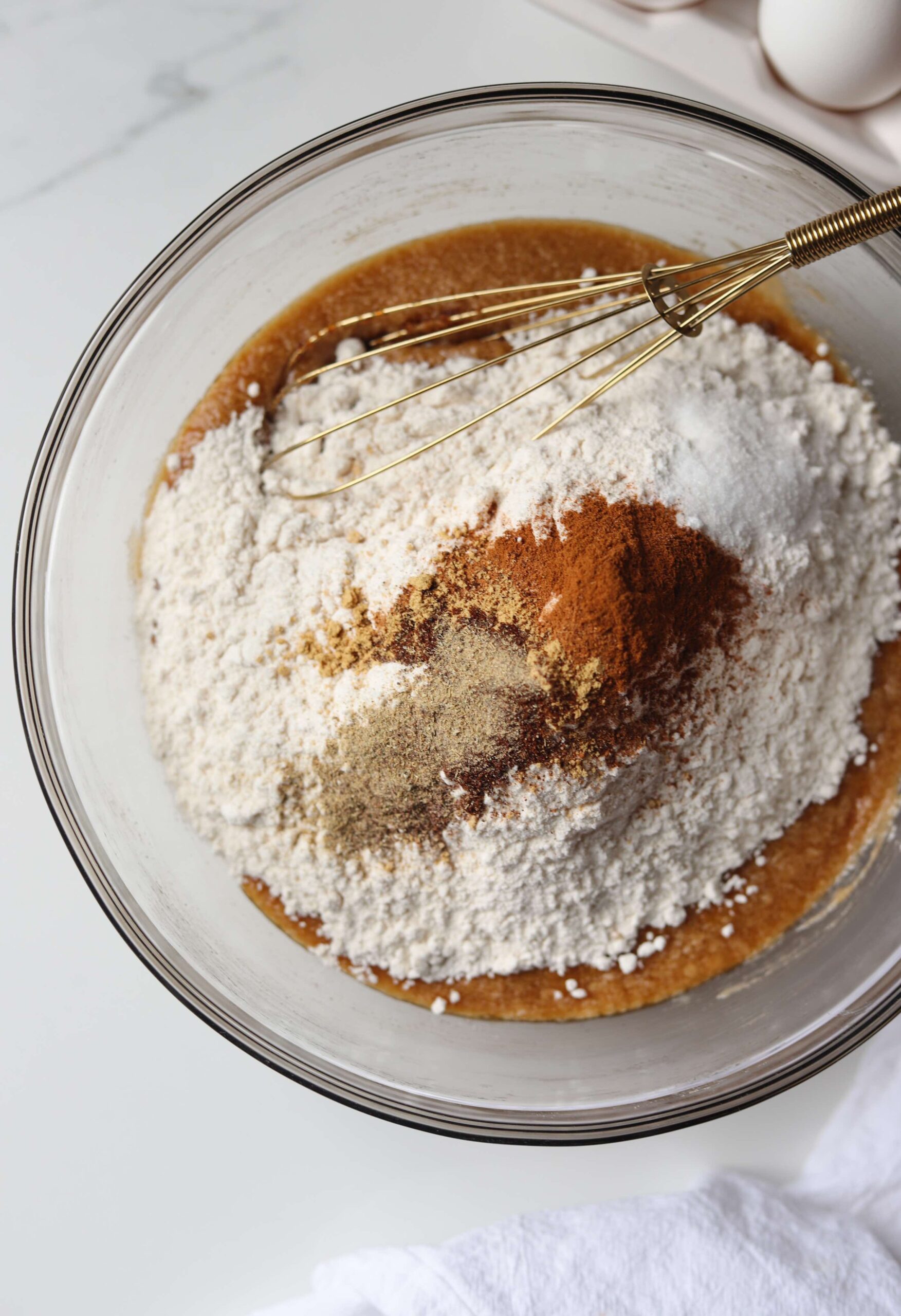 - Add 1 1/2 cups of all purpose flour, 1 teaspoon of baking soda, 1 teaspoon of ground cinnamon and 1/2 teaspoon of salt and mix until combined