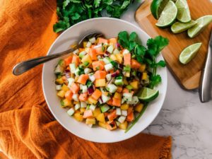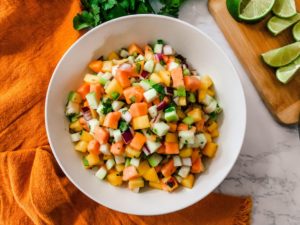 This salsa is simply fantastic. Perfectly sweet, juicy and refreshing with great texture from the apples and red onion and so many layers of flavor. The sweetness of the mango is well balanced by the tart apple and heat from the jalapeño. The papaya has a light melon-like flavor that is classically paired with fresh lime juice and once you taste all of this together, you will know exactly why. It is just perfect.