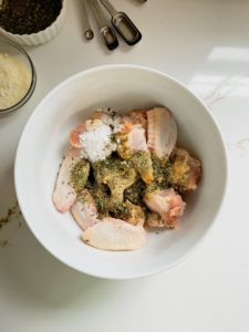 Although ranch dressing is a great partner for chicken wings, if you want to add ranch into your chicken wings, it will need to be a dried spice version. While there is a ranch seasoning mix you can buy at the store, we are making it from scratch today. The pre-made stuff isn’t too bad, but this version is much better and you are going to love what it adds to these wings!