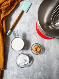 All you will need is some cold heavy cream, some creamy peanut butter and confectioners sugar. Easy, right?