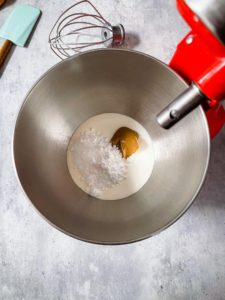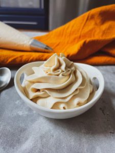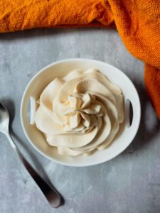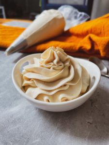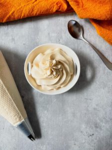 Once your whipped cream is ready, you can scoop it into a bowl or transfer it into a piping bag, if you want to make things a little fancy.
