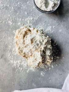 Transfer the dough onto a floured surface and knead until it comes together and can be formed into a round ball, about 2 minutes or so. This dough does not need to be kneaded very much, just enough to ensure the flour is incorporated.