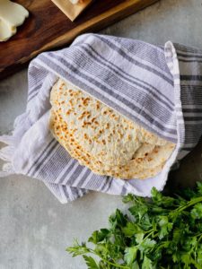 You want to keep the dough and the cooked piadinas covered during the entire process. The unshaped dough will dry out if left uncovered and the cooked piadina will cool and become too flaky to fold if not kept warmly wrapped in a towel.