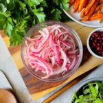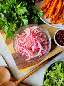 Sweet, salty and tangy red onions quick pickled to perfection.