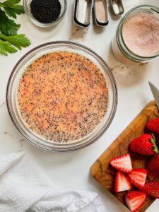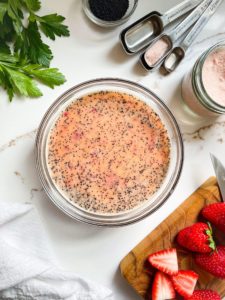 You will love this tangy, sweet and subtly bitter twist on a classic poppyseed dressing, especially if you are a fan of the earthy pop of flavor that red onions add. Whether you are a fan of unique dressings or have a pink themed dinner party coming up, this beautiful dressing is something you should try.