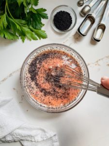 - Transfer the vinaigrette into a bowl and whisk in 1 tablespoon of poppyseeds