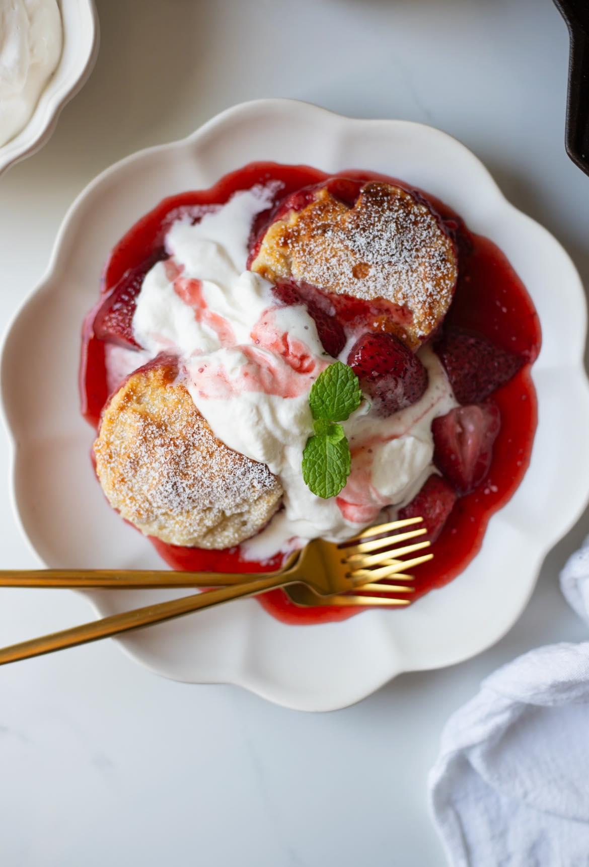 Strawberry Cobbler with Vanilla Cream Biscuits