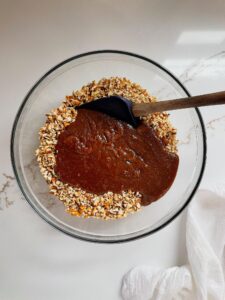 Mix the nuts and the thickened sugar mixture until everything is even distributed. Set this aside to cool until the dough is ready to go.