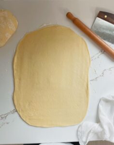 - Roll each portion into a rectangle about 14” long and 18” wide