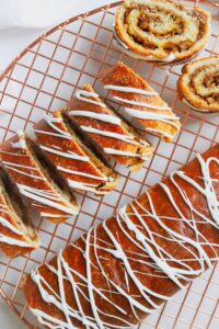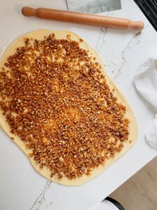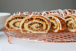 All of the recipes have certain elements in common. They are typically made with a buttery brioche style dough rolled out thin, covered in a sweetened ground nut mixture and rolled to create a beautiful pattern when sliced.
