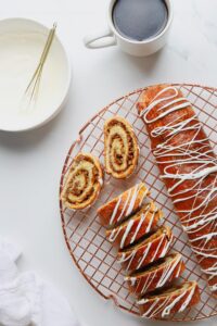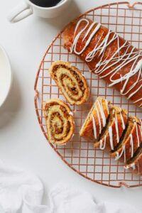 This fabulous nut roll can be enjoyed with or without a sweet drizzle and although it does not need it flavor wise, I do love what it does for the look of the finished product….