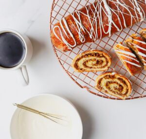- In a small dish, whisk 1-2 teaspoons of heavy cream or milk into a cup of confectioners sugar and drizzle over the fully cooled nut rolls