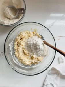 - Continue to add flour, a little at a time until a soft, sticky dough forms