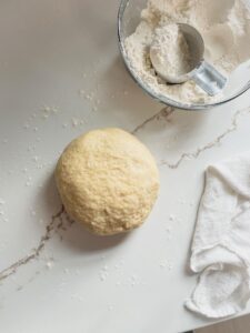 - Transfer the dough onto a lightly floured surface and knead until smooth and elastic (add additional flour if necessary, but as little as possible)