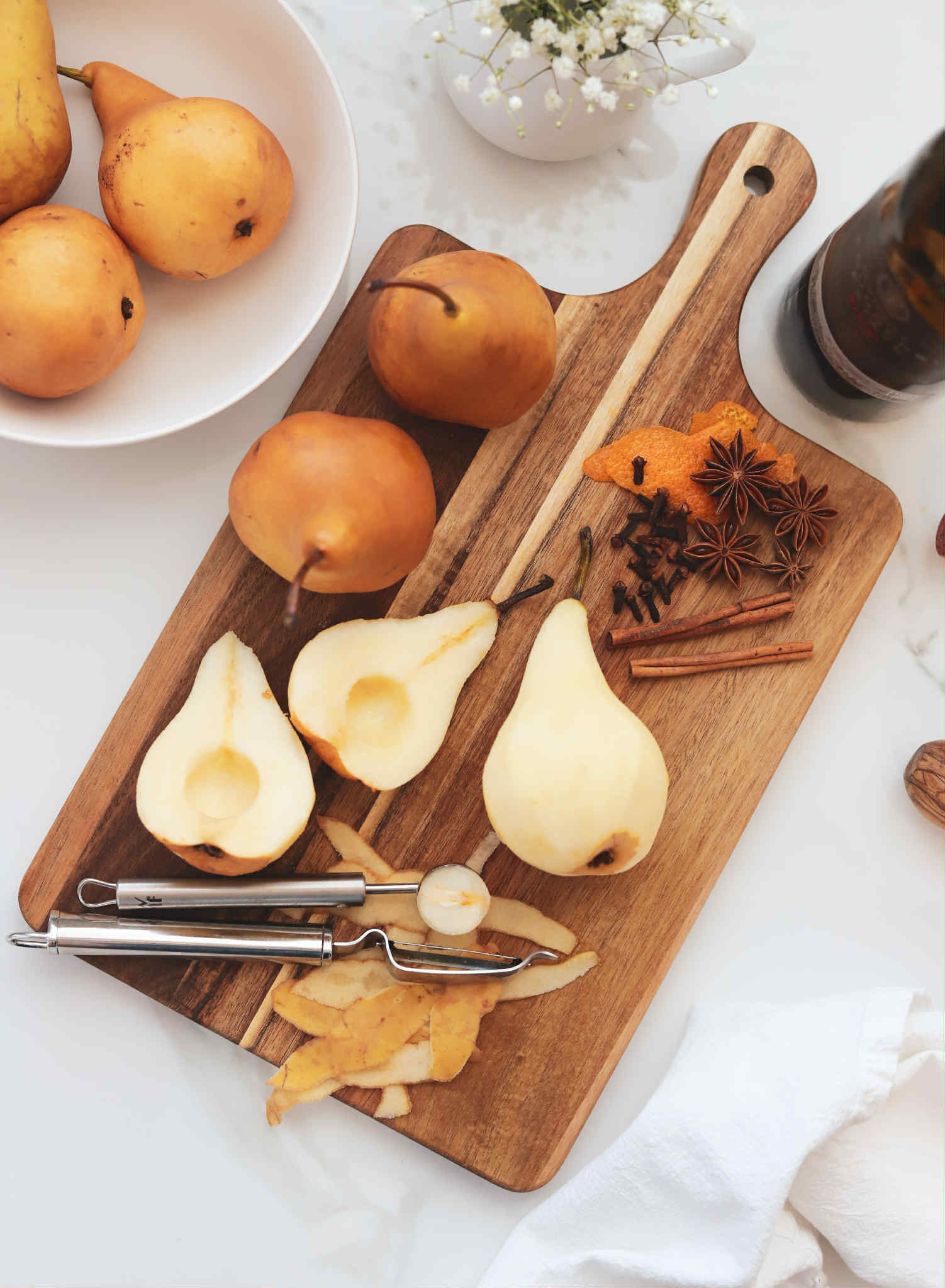 Begin by prepping your pears.