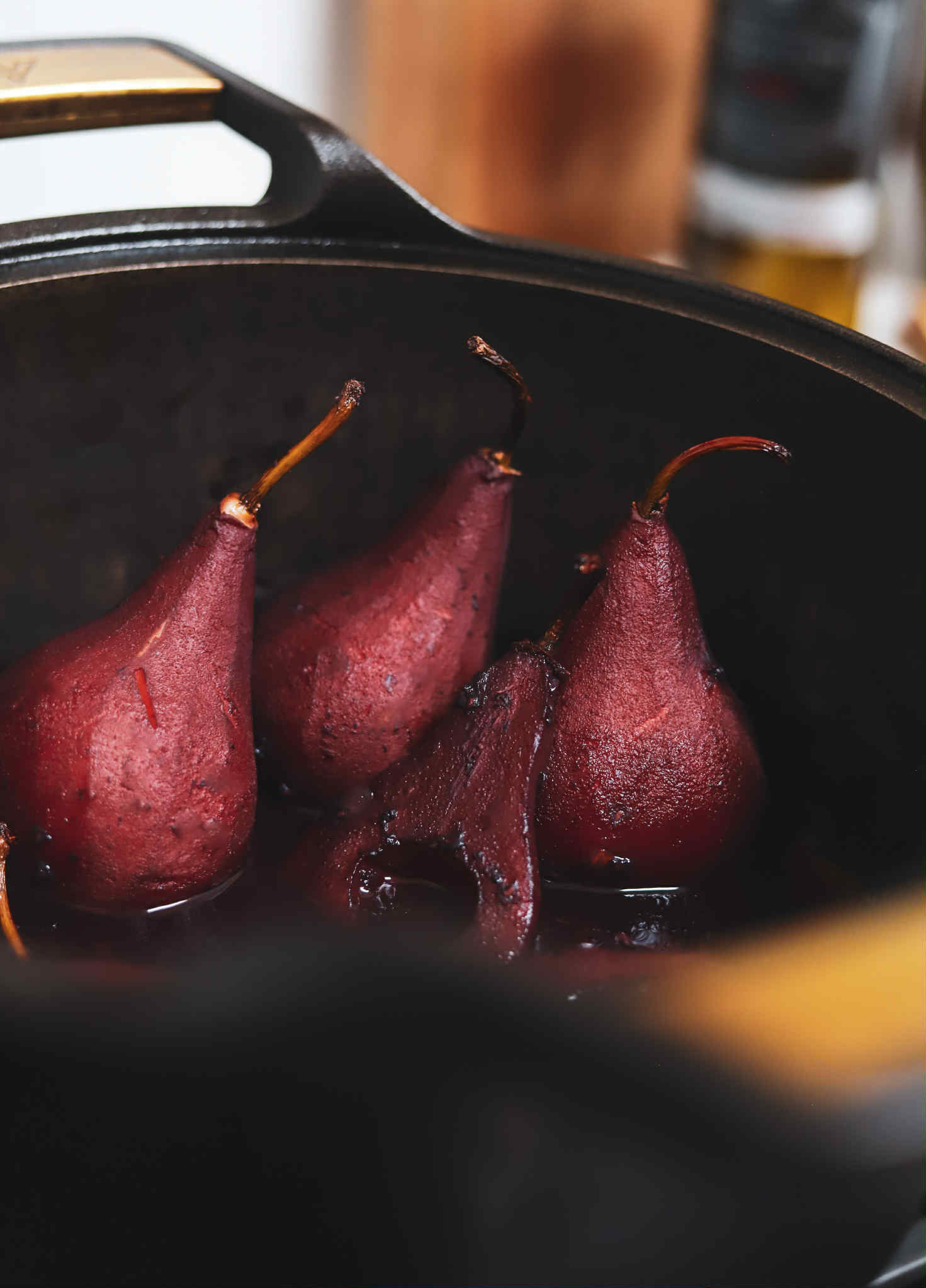 Look at that gorgeous color! You can just see all of the flavors have completely soaked through these pears and they are going to be delicious.