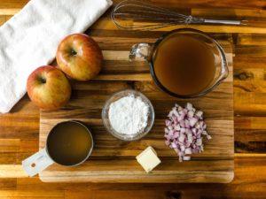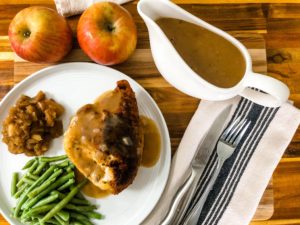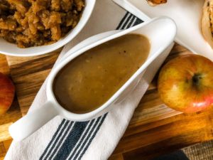 This gravy is so delicious. The texture is thick and smooth and the flavor is incredible. The base is that classic homey chicken flavoring with the addition of subtly sweet apple goodness.