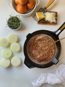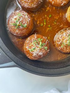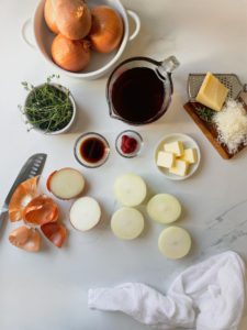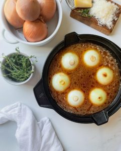 For topping, you will need about 1/2 cup of finely shredded Gruyère and some fresh thyme and I highly recommend keeping some crusty bread nearby to soak up the broth. You’ll be glad you did…