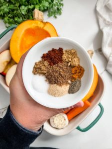 This roasted pumpkin bisque has so much flavor! I love the way that roasting brings out the natural sweetness in the pumpkin, apple and onions. All of that roasted garlic adds a beautiful layer of nuttiness and all of those spices add warmth, spice and smokey goodness. So much flavor, such little effort…