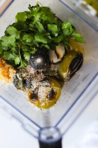 Blend until the salsa reaches your desired texture. I like my salsa verde fairly smooth, but as long as the garlic is broken down and everything is well distributed, you can stop blending when things are still chunky or keep going until everything is super smooth.