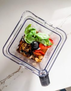 Blend the ingredients until it is mostly smooth and then give it a quick taste. Add additional salt, black pepper or crushed red pepper flakes, if necessary. You can also add more broth if you prefer your soups consistency to be a little thinner.