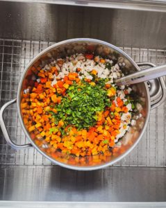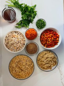 Once everything is cooked and has cooled down a bit, it is time to begin combining everything!