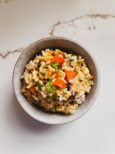 Similar to my original homemade dog food recipe, this roasted vegetable soft dog food is nutritionally balanced and full of what your dogs body needs to stay happy and healthy. This recipe is a bit softer in texture than the original recipe, which is perfect for older dogs or dogs that require a soft diet. It is full of roasted sweet potatoes, carrots, chicken and plenty of other delicious ingredients that your dogs will love.