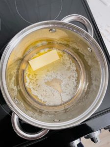 - Place 1/2 cup of salted butter in a skillet over medium heat