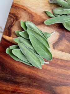 Sage is really beautiful. The leaves are soft and tender and they smell like the holidays… I am a big fan!