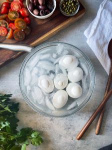 - After 6 minutes, transfer the eggs into a bowl of ice water to cool
