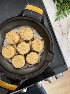 - Once the butter and olive oil has preheated in the pan, brown the croquettes on both sides (approximately 3-4 minutes per side)