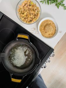 - Mix to combine and add additional whisked egg if necessary to create a consistency that will hold a patty shape easily