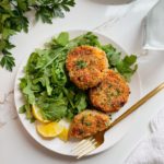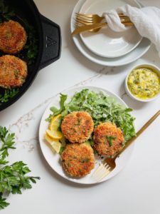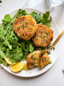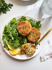 Salmon croquettes or as moms everywhere call them “salmon patties” were a staple in our house growing up. My mom would make a big plate of them, mix up this simple, but addicting pink sauce and we would all fight over the last one.