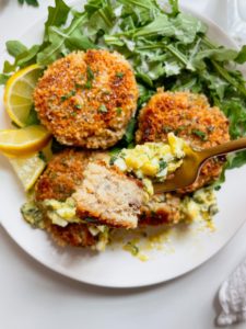 Recently, I began craving this classic comforting dish and whipped up a batch of crispy, buttery salmon croquettes that I just had to share with you. These little beauties can be made with fresh salmon or canned and are full of fresh lemon, herbs and light, crunchy panko breadcrumbs. They are quite delicious and are easy enough for a quick weeknight meal, but are also complex enough to serve at a dinner party.