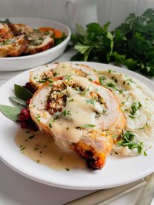 This pan gravy comes together in just a few minutes with basic pantry ingredients and can be easily made as thick or thin as you need. So, the next time you are roasting a turkey breast or pork tenderloin, but want to have a little gravy with your mashed potatoes, you can!
